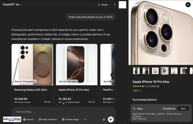 此外,今日起用戶在詢問有關產品或購物資訊時,ChatGPT以更佳方式顯示,包括更清晰的產品簡介,加入直接的購買連結。ChatGPT強調,有關連結並非廣告,只是讓大家更易搜尋和購買想要的產品而已。