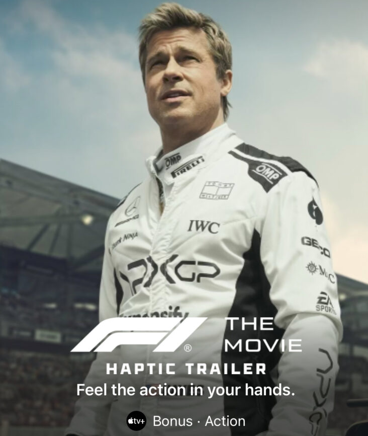 大部份新型號的iPhone,本身支援Haptic Feedback(震動效果),蘋果決定在WWDC 25舉行期間,活用有關技術讓用戶以不一樣的方式去欣賞《F1:The Movie》新電影預告片。用家只要用支援震動效果的iPhone,於Apple TV app選擇今日發佈的《F1:The Movie》最新電影預告片,又或者用iPhone按此處,就可以感受到邊睇電影預告片,一邊隨着畫面震動的效果。