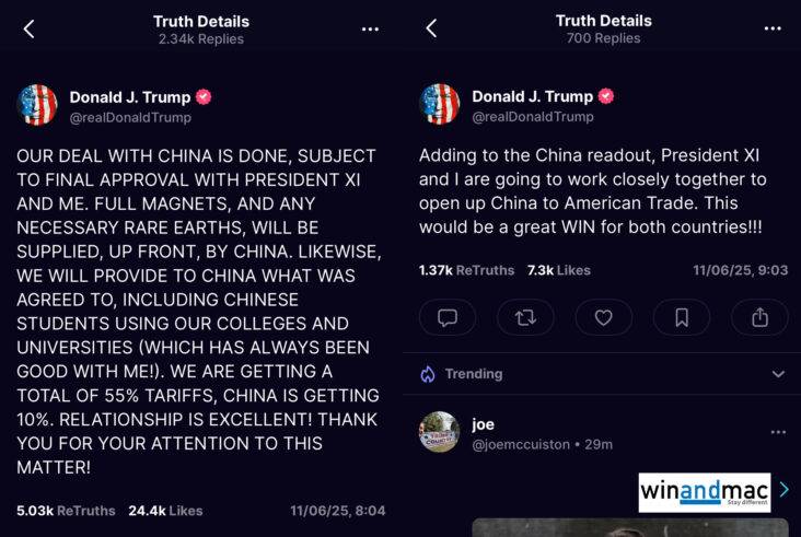 中國與美國代表這兩天在倫敦進行會談,就相關關稅與貿易希望達成共識。特朗普雖然沒有直接出席,但就搶先在當地時間11日發表文章,指他們已與中國達成協議。當然,協議仍需獲得特朗普與中國國家主席習近平的最終批准。特朗普稱,雙方初步達成協議,中方會先行出口稀土金屬與磁石,而美國則會放寬中國學生的簽證限制。他強調,一向歡迎中國學生到美國。根據協議內容,美國將對中國商品徵收總共55%的關稅,包括現有25%關稅、新增10%基本關稅,以及20%針對芬太尼(fentanyl)產品的附加徵稅。中國則會對美國貨品徵收10%關稅。