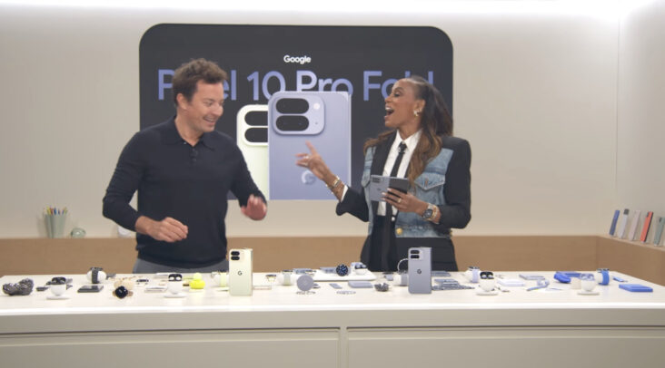 摺疊機版本Pixel 10 Pro Fold採用雙螢幕設計,外螢幕為6.4吋Actua OLED,內螢幕為8吋Super Actua Flex,兩塊螢幕最高亮度都達3,000 nits。機身採用航空級鋁合金和無齒輪鉸鏈設計,配備Gorilla Glass Victus 2保護玻璃,是首款達到IP68防水防塵等級的摺疊手機。電池續航力超過30小時,支援Qi2磁吸無線充電和快速有線充電。相機系統包括48MP主鏡頭、10MP超廣角和10MP長焦鏡頭,並針對摺疊機優化多項AI功能。大螢幕支援分割視窗、拖放操作和遊戲控制器功能,售價約US$1,799。