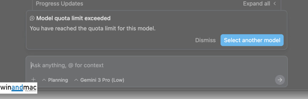 Google亦聲稱Gemini 3寫程式碼表現更好,今日更推出Antigravity新程式,讓程式設計員可以下載用AI協助寫程式。不過,小編實測Gemini 3多方面表現,發現其效果僅為一般,不算太差,也不見得特別好。小編亦特別用困難的程式碼作測試,Gemini 3 Pro (High)仍然無法解決,相反ChatGPT 5.1或Claude Opus 4.1等仍然輕鬆解決。而且,就算是付費用戶,Antigravity提供的用量不多,小編試了兩三次就出現以下用量已爆的情況。在Threads搜尋大家對Antigravity的反應,亦可找到有用戶投訴Antigravity十分不穩定。